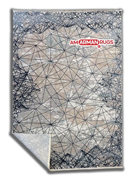 Elevate your interior with this modern geometric rug featuring a striking interplay of beige, cream, and light gray tones contrasted by bold navy or black lines. Its intricate web-like pattern adds depth and visual intrigue to any room. Crafted with high-quality materials, this rug is designed for durability and a soft touch underfoot. Perfect for contemporary living spaces, offices, or lounges, it effortlessly blends style and functionality. The neutral hues ensure it complements a variety of decor styles, while the bold pattern makes it a standout piece. Add a touch of sophistication and creativity to your home with this unique design.