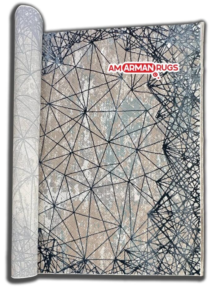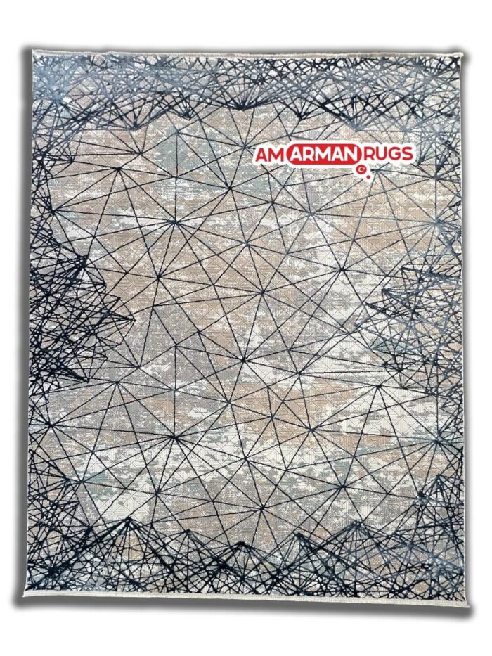 Elevate your interior with this modern geometric rug featuring a striking interplay of beige, cream, and light gray tones contrasted by bold navy or black lines. Its intricate web-like pattern adds depth and visual intrigue to any room. Crafted with high-quality materials, this rug is designed for durability and a soft touch underfoot. Perfect for contemporary living spaces, offices, or lounges, it effortlessly blends style and functionality. The neutral hues ensure it complements a variety of decor styles, while the bold pattern makes it a standout piece. Add a touch of sophistication and creativity to your home with this unique design.